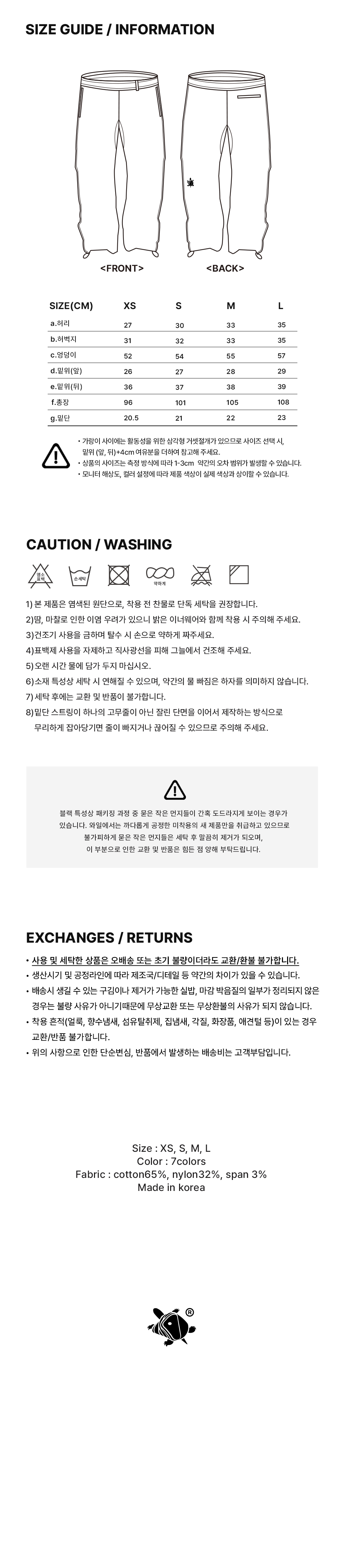 • Damage from improper washing is not eligible for exchange or return. Please familiarize yourself with the washing instructions before purchase.