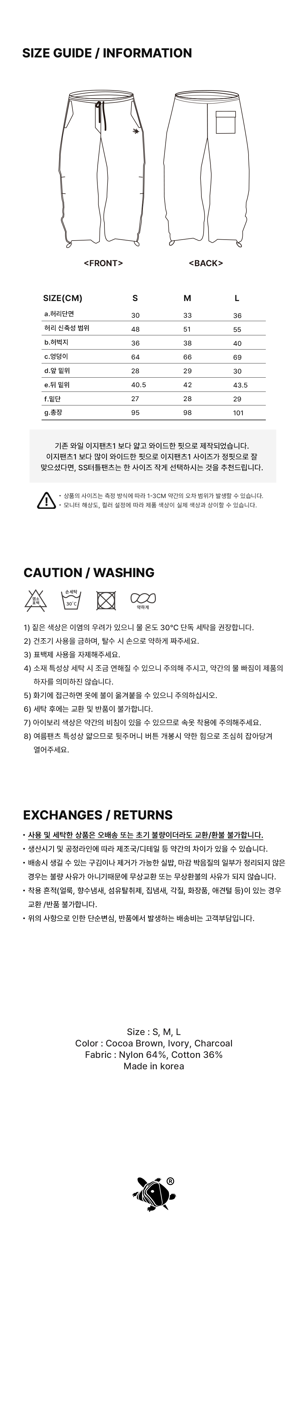 Length 101 / Front Rise 30 / Back Rise 43.5 / Hip 69